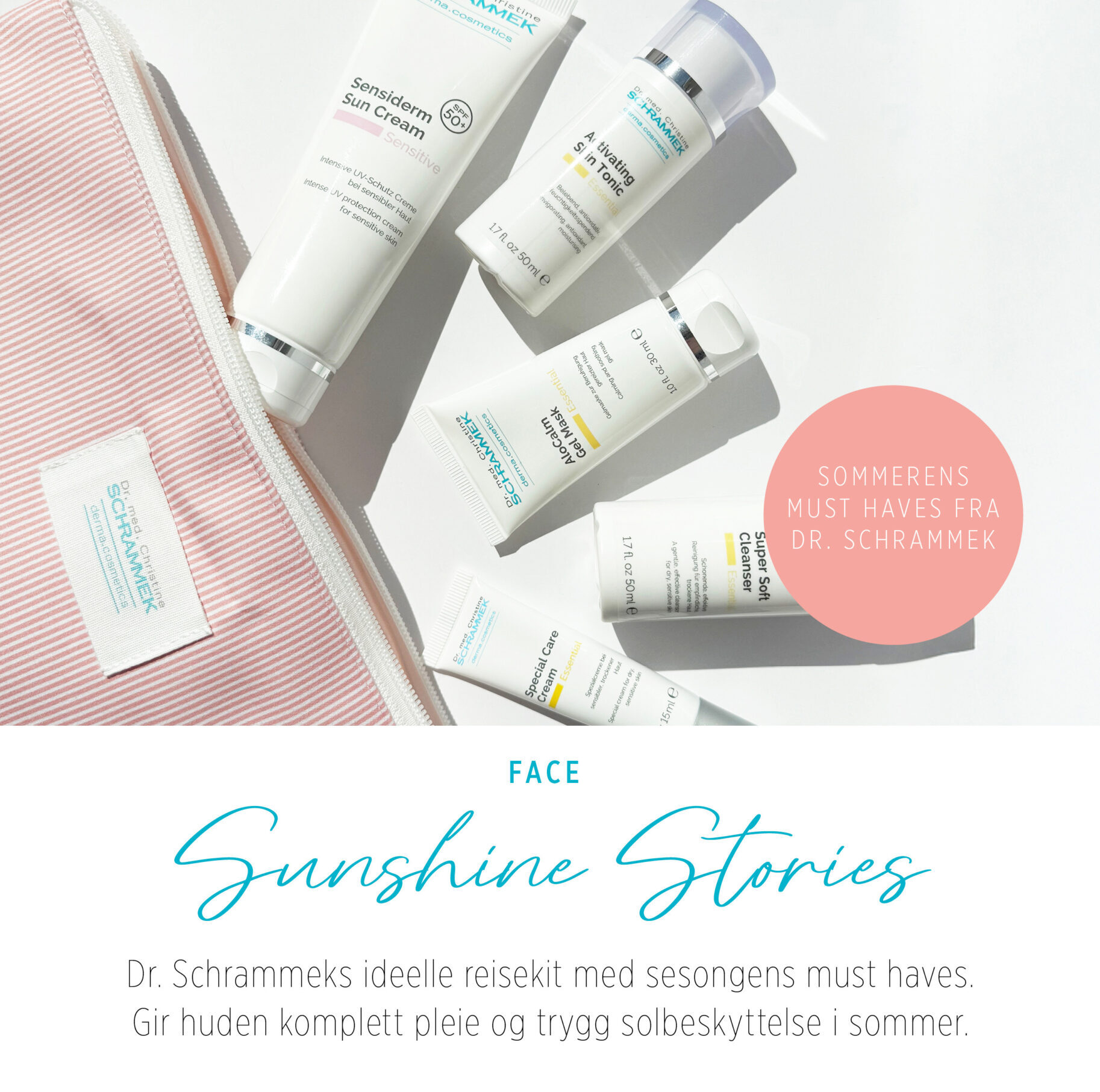 Dr. Schrammek sitt idelle reisekit med sesongens must haves. Gir huden komplett pleie og trygg solbeskyttelse i sommer.